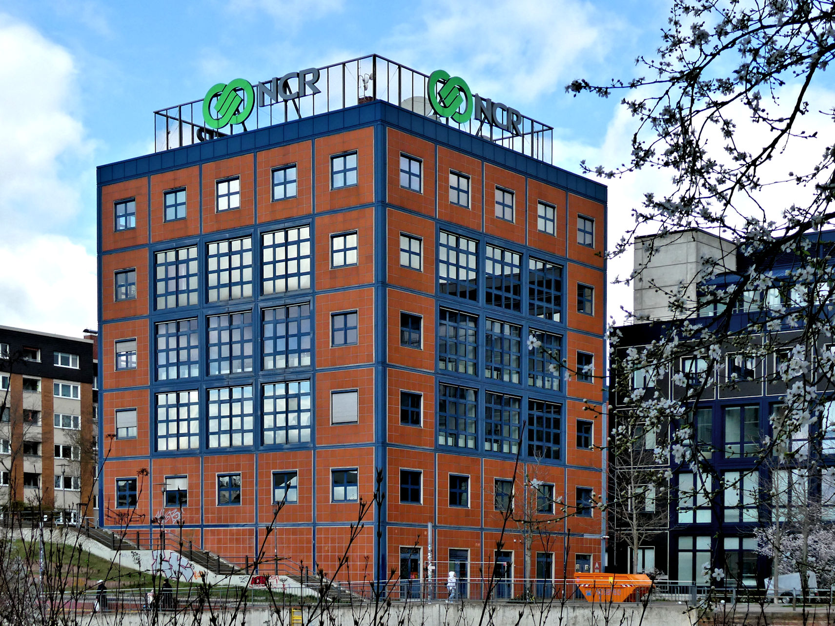 Joachim Ganz und Walter Rolfes bauten 1987–1990 auf dem ehemaligen Fabrikgelände der Kampffmeyer-Mühlen GmbH dieses Dienstleistungszentrum der Computer- und Elektronikbranche.